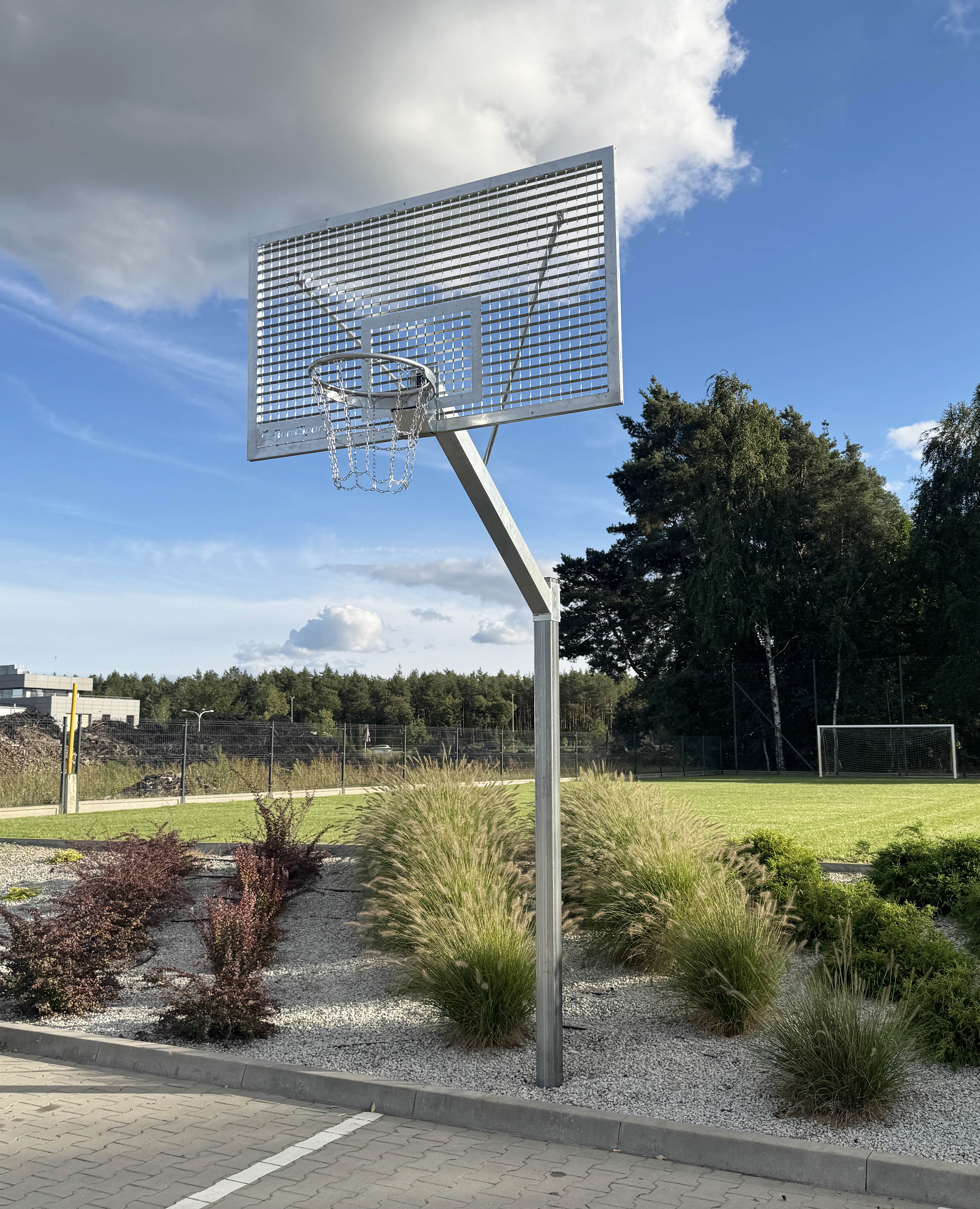 Stalowa konstrukcja zabezpieczona jest ocynkiem ogniowym, który skutecznie chroni przed korozją. Obręcz ocynkowana w wersji stałej współpracuje z siatką łańcuchową, charakteryzującą się bardzo wysoką odpornością na warunki atmosferyczne oraz akty wandalizmu.