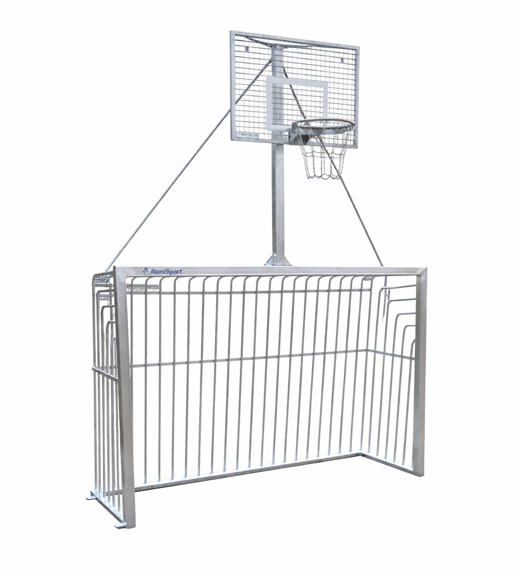 Bramko-kosz przestawny, tablica kratownica 120x90, obręcz ocynkowana z siatką łańcuchową    Bramko-kosz przestawny o wymiarze w świetle 300 × 200 cm i wysokości całkowitej 380 cm łączy funkcjonalność bramki do piłki ręcznej…