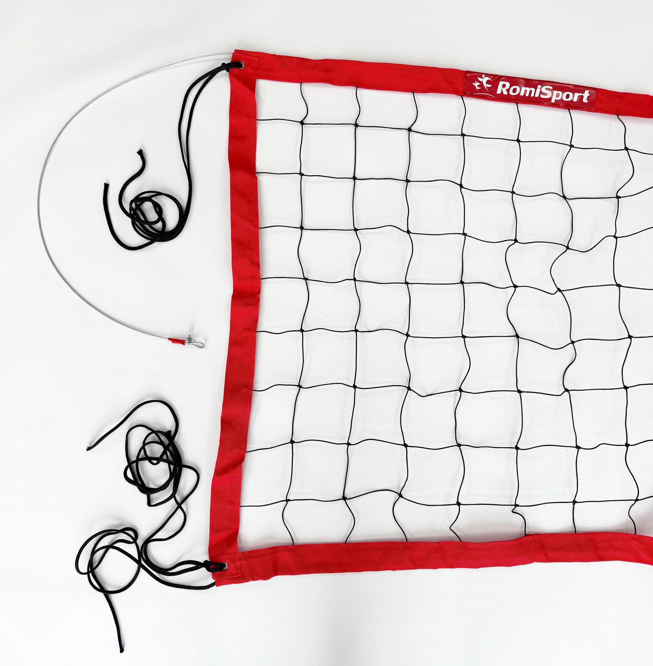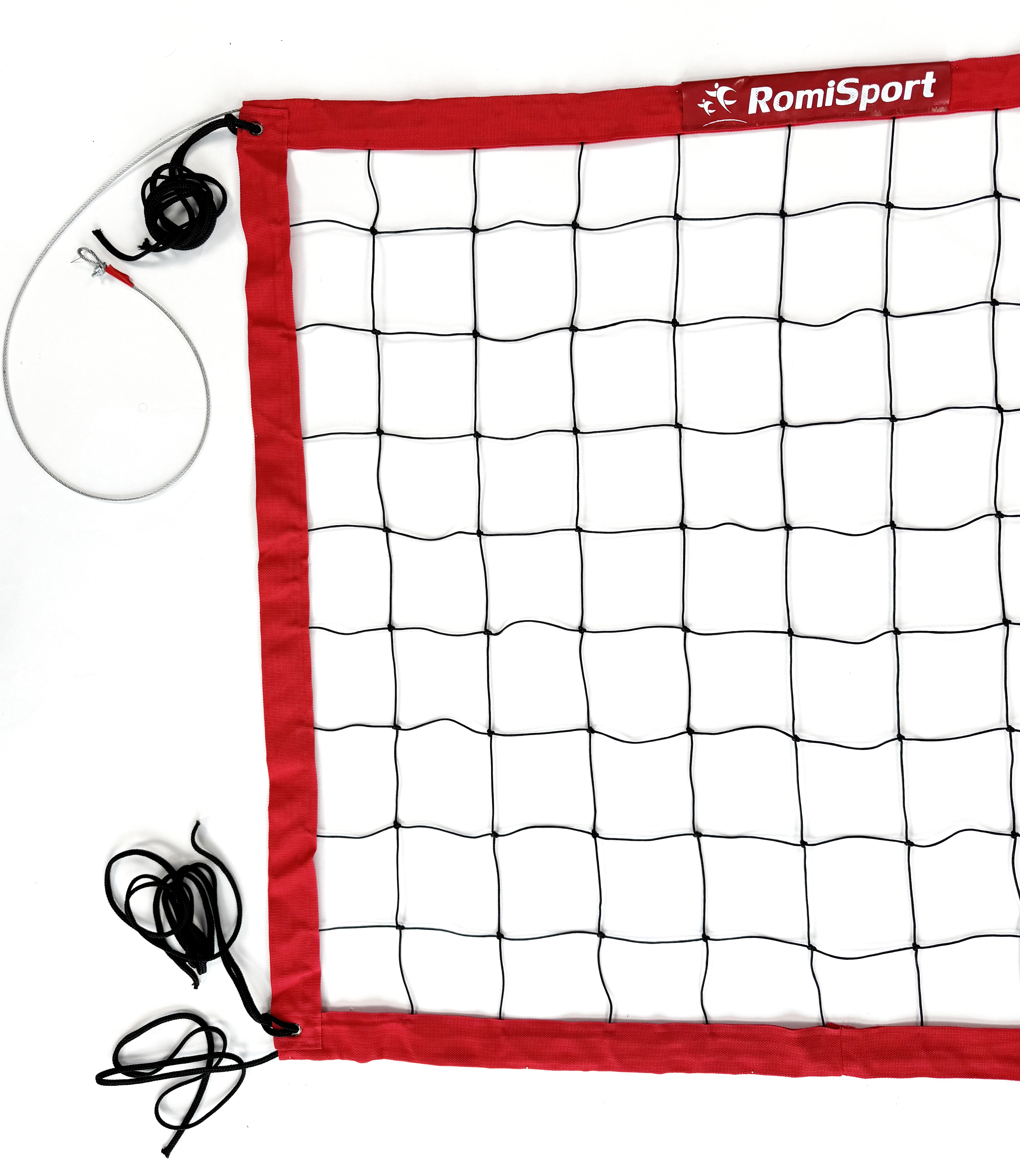 Profesjonalna siatka do siatkówki halowej z główną linką stalową, obszycie w kolorze czerwonym |
