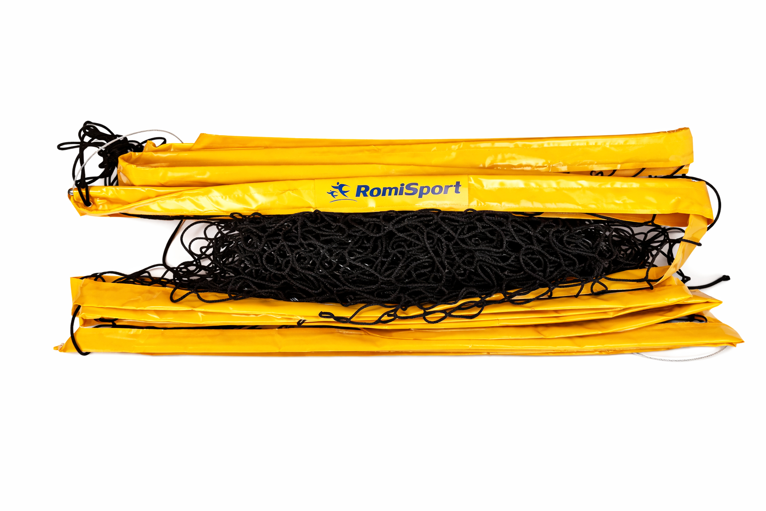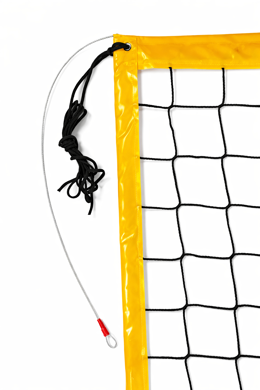 Profesjonalna siatka do siatkówki plażowej z główną linką stalową, obszycie w kolorze żółtym, usztywnienie boczne |