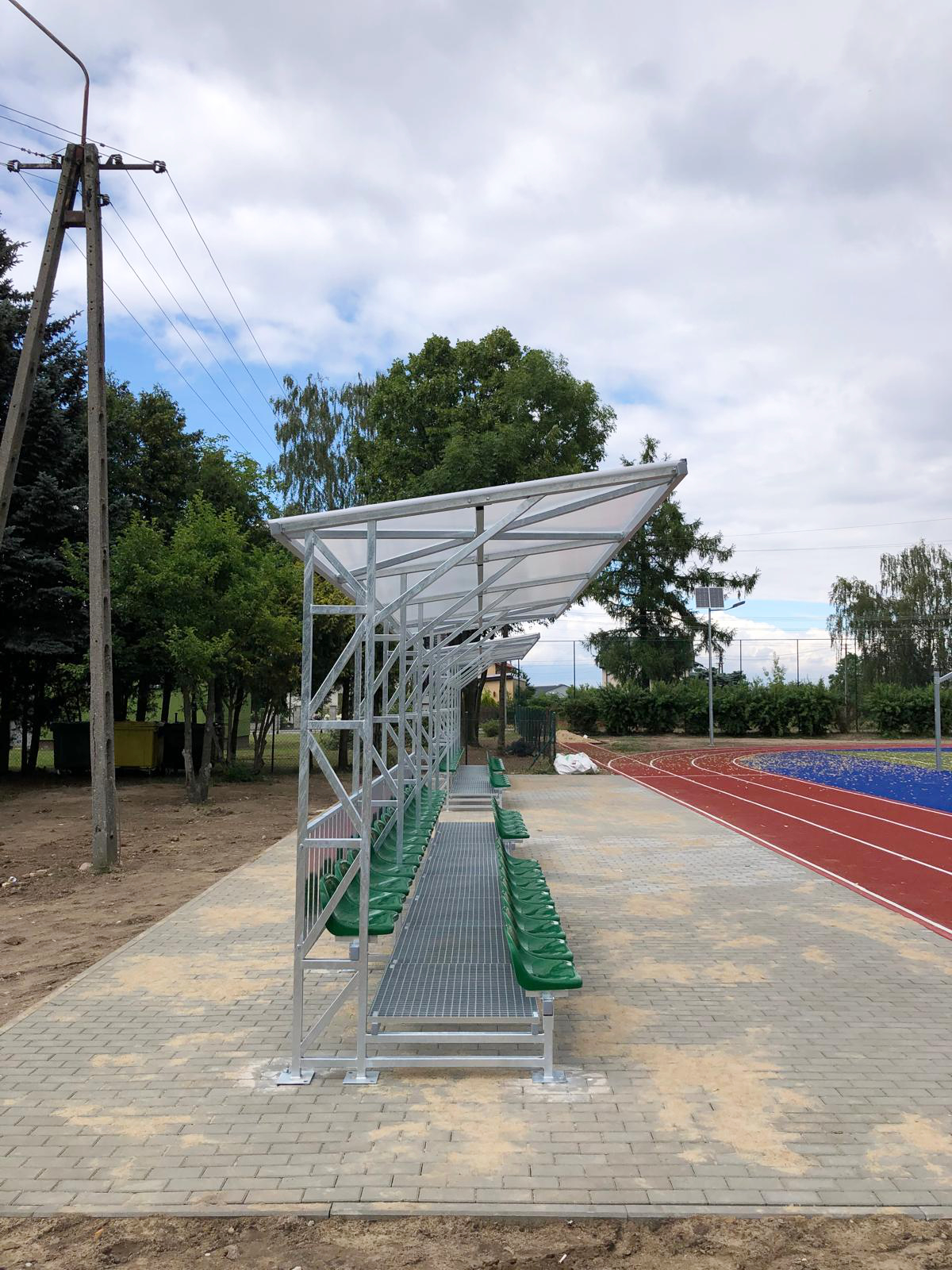 Sportowe trybuny modułowe zadaszone składają się z pojedynczych modułów dostosowanych do wymagań Klienta.